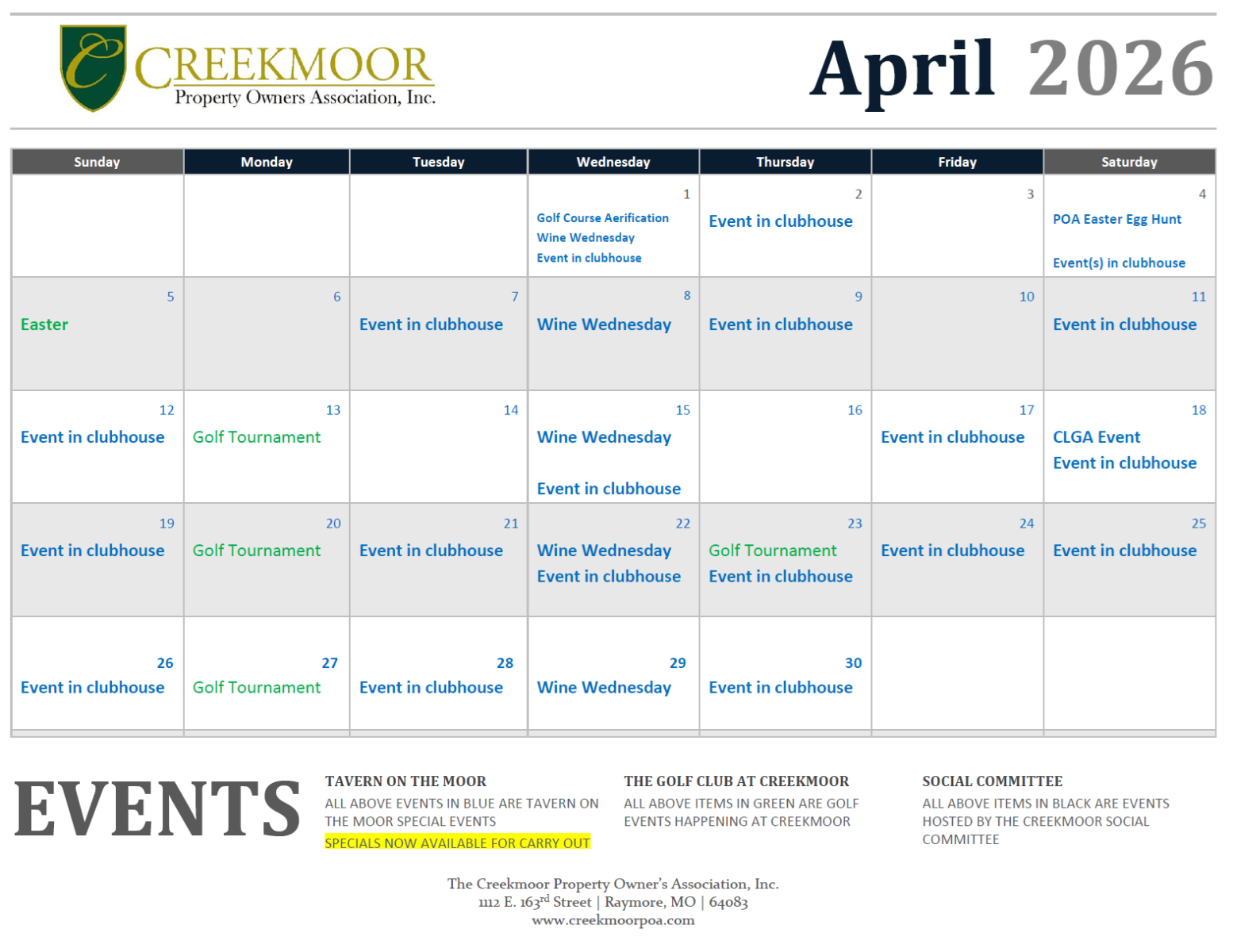 Do you have a question for one of the POA committees? If so, you can reach members of the Lake Committee, ARC committee or Beautification Committee by email at committees@creekmoorpoa.com.